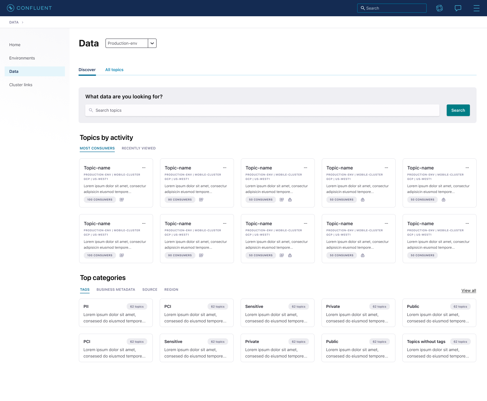 Several other teams at Confluent also needed a Data Portal at the same time, so I took the initiative to lead the design for this. I created a holistic vision that addressed the needs and goals of our users while maintaining alignment with the different teams.