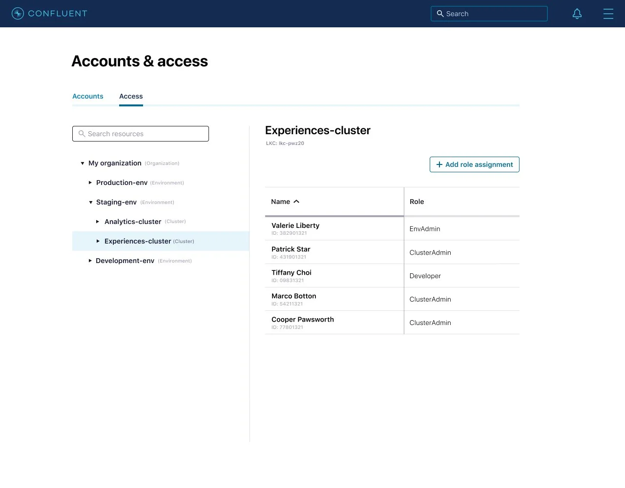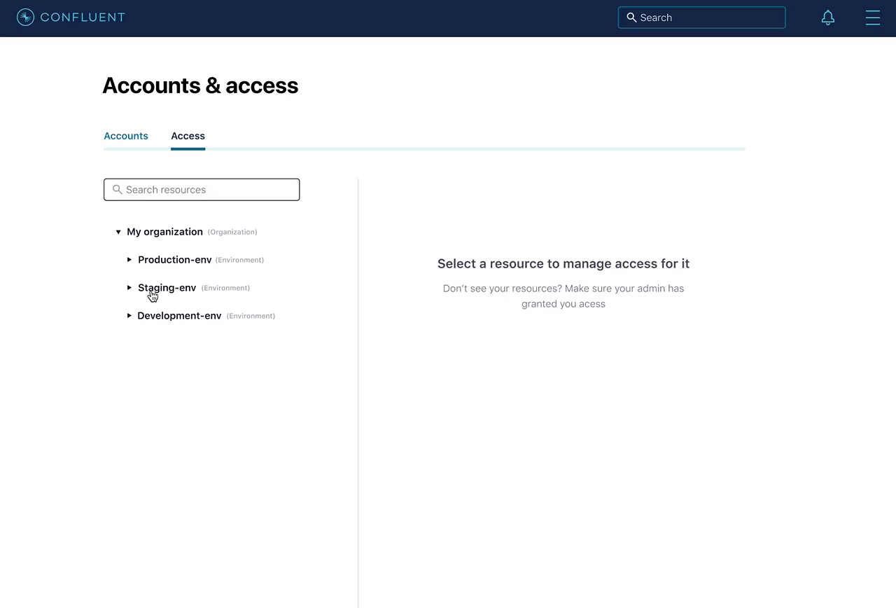 For users to easily manage all the roles for the different resources while also being able to navigate and understand the hierarchy of the resources, I created an expanding table component. This allowed users to click through the different resources while also seeing the hierarchy of the resources without leaving the page.